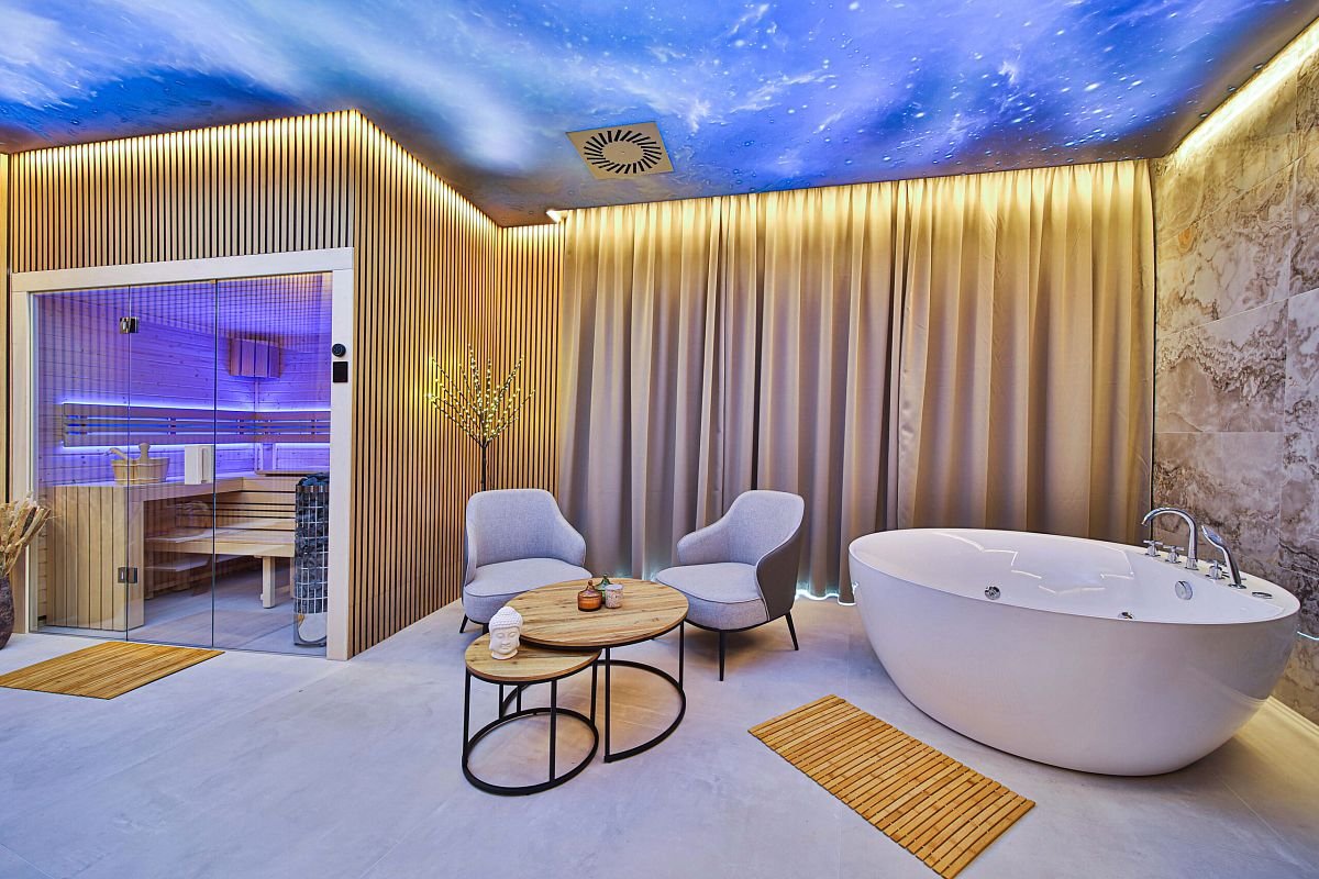 Budujeme zde celkem 9 privátních zón s velkými ještě luxusnějšími vířivkami, finskými saunami, infra saunami, parní saunou a vším, na co jste u nás zvyklí s vylepšenými detaily a zařízeními díky větším rozměrům zón: