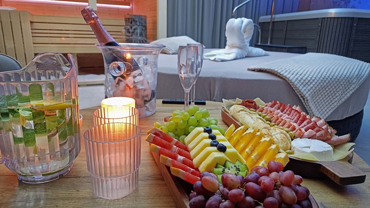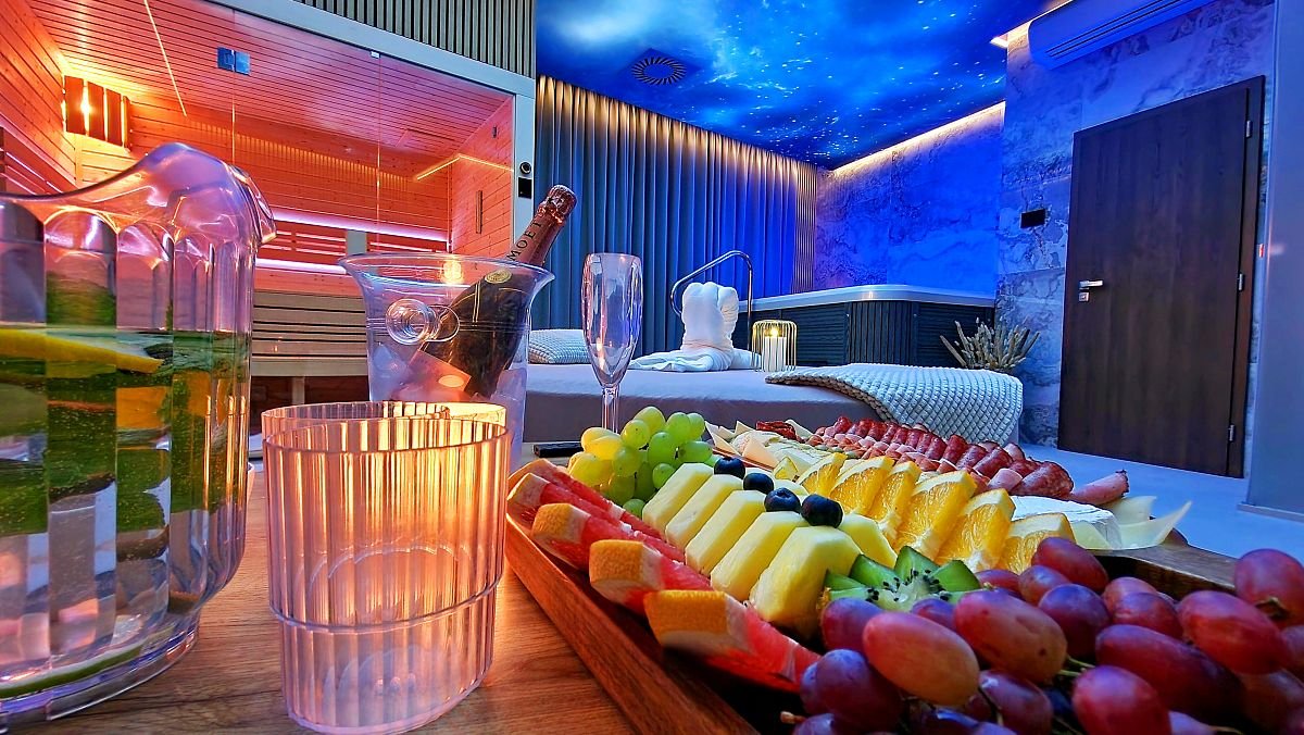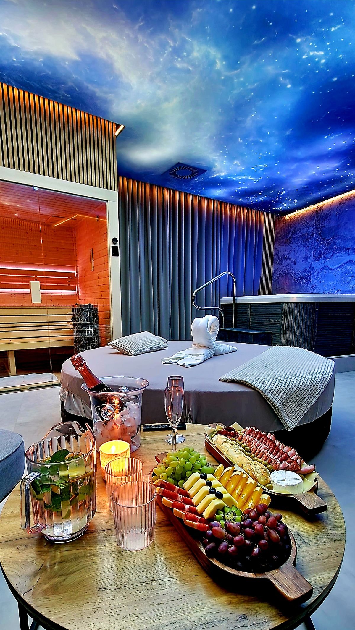 - 1 privátní zóna bude mít velikost až 150 m2 pro 2-20 osob – bonusem této největší zóny, bude možné využití pro soukromé párty a oslavy až pro 20 osob. Tato zóna bude disponovat vlastním barem s posezením pro 20 osob a zvlášť zónou s vířivkou s přelivem, saunami různých typů, ochlazovacím bazénkem a dalšími prvky pro kvalitněji strávený čas při Vašich oslavách a párty.