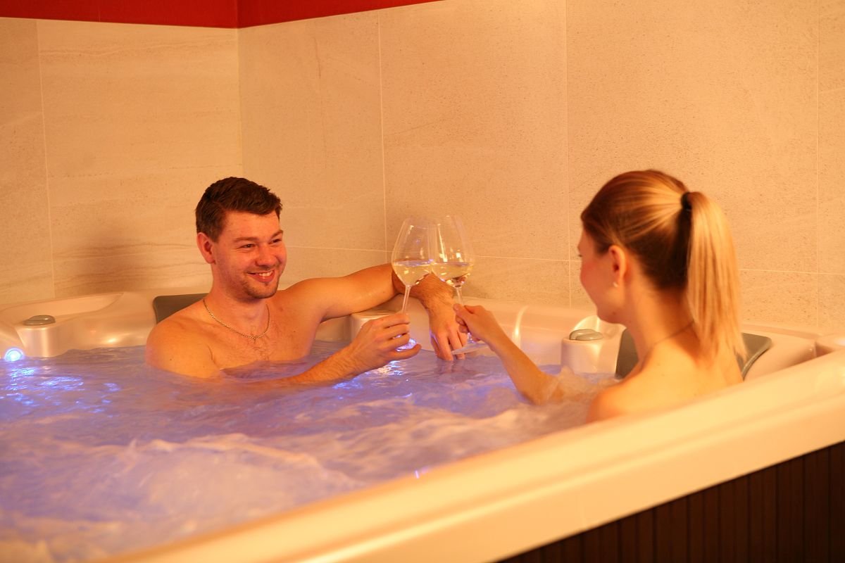 Nechybí také příjemné osvětlení a krásný výhled na hvězdné nebe přímo nad vířivkou.