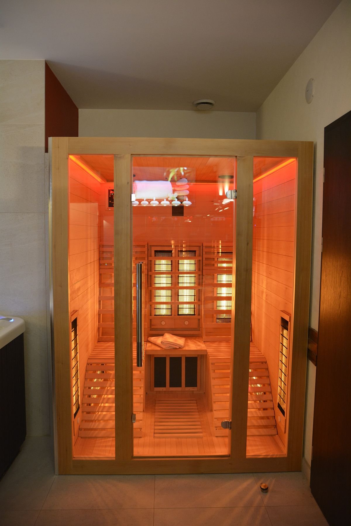 V tomto typu sauny probíhá saunování na principu emise infračerveného záření pomocí speciálních keramických zářičů. Záření proniká hluboko do svalové tkáně a prohřívá ji. Vyzařované teplo se z osmdesáti až devadesáti procent vstřebá do lidského těla. Do prostoru kabiny se dostane jenom zbytek tepla, což umožňuje dýchání vzduchu v kabině o teplotě 65 °C. Infrasauny prohřívají tělo a prokrvují organismus. Saunování posiluje imunitní systém, uvolňuje dýchací cesty, vylepšuje nespavost, akné, ekzém, bolesti v krku a onemocnění uší.